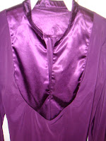 This is the dress I made to announce my engagement at Thanksgiving to some extended family. It was my first Burda Style pattern (09/10 #109B), and it turned out great! Unfortunately, the September patterns aren't posted on the website, so I can't link to it. The only thing I changed from the pattern were two strips coming out the sides to tie in the back for shape/decoration.It's a simple tunic look dress made from crepe-backed satin. I didn't actually use crepe-backed satin, I used a thicker regular satin and the reverse side of that fabric. And the best part of the fabric is that it has some stretch to it!